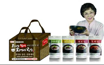 ㈜동의보감농수산의 대표 브랜드인 곤지암할매소머리국밥에서 설맞이 선물세트를 출시하였다. 그동안 매장에서 많은 인기를 얻은 소머리국밥, 나주곰탕, 내장탕, 육개장등 6가지 메뉴를 선물세트로 구성하여 저렴하고도 간편하게 집에서 건강한 한끼 식사로 즐길 수 있다.㈜동의보감농수산은 최근 월남쌈&구이 샤브샤브 전문점 쌈촌 을 전국에 300여개 오픈시켰으며 새로운 브랜드 곤지암할매소머리국밥은 건강한 맛, 합리적인 가격으로 외식 프랜차이즈 업체들 가운데 눈에 띄는 성장을 거두고 있다.곤지암할매소머리국밥 의 가장 큰 특징은 자체기술개발을 통해 가마솥에서 오랜 시간 고아낸 진한 육수와 한우 소머리고기가 넉넉히 들어가 있어 풍미를 살리고 부담 없는 가격으로 푸짐한 한 끼 식사가 가능하게 대중화 시킨 점이다.곤지암소머리국밥은 한우소머리고기만을 고집하면서도 합리적인 가격으로 소비자들의 가격부담을 최소화했고, 다양한 사이드 메뉴는 곤지암할매소머리국밥만의 자랑이다.월~금요일 12시 이전 주문시 1~2일 후 수령 가능하며 수령 즉시 냉동보관해야 한다.