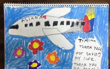 운항 중 어린이 응급 환자가 생기자 항공유를 버리고 인근 공항에 비상 착륙해 무사히 위기를 넘긴 어린이 승객의 아버지가 아시아나항공에 감사 편지와 그림을 보냈다. 아시아나항공은 6일 미국에 거주하는 8세 최모 양은 지난달 8일 한국 방문을 위해 어머니와 함께 뉴욕에서 인천으로 향하는 아시아나항공 OZ221편에 탑승했다.출발 후 약 1시간 30분이 지났을 무렵 최 양은 갑자기 고열과 복통에 시달렸으며, 아시아나항공 승무원들은 비상 상황임을 직감하고 곧장 응급 처치에 들어가 차가운 물수건으로 최 양의 몸을 닦아주고 대화를 시도하며 상태를 파악했다. 동시에 탑승객 중 의사가 있는지 기내방송을 했고, 탑승하고 있던 의사로부터 병원으로 이송해야 한다는 소견을 전달 받았다.차명호 선임기장과 조한주 수석사무장 등 아시아나항공 직원들은 응급환자 후송을 최우선으로 판단해 함께 탑승해 있던 승객 470여 명에게 양해를 구한 뒤 인근 앵커리지국제공항으로 회항해 비상 착륙했다. 미리 연락을 받아 지상에서 대기하고 있던 아시아나항공 앵커리지 지점 직원들은 최 양이 무사히 인근 병원에 후송되도록 도왔다. 병원에서 응급 조치를 받은 최 양은 위기를 넘겼다.아시아나항공은 착륙을 위해서 항공유 15t을 공중에 버렸다. 연료를 소진해 무게를 줄여야만 안전한 착륙이 가능하기 때문이다. 해당 항공기는 재급유를 마친 후 앵커리지공항을 출발해 인천국제공항에 4시간 가량 지연 도착했으나 "긴급 회항으로 지연돼 죄송하고 협조에 감사하다"는 기내 방송에 470여 명의 승객은 박수로 답했다.승객들의 협조와 항공사의 도움으로 딸 아이가 위험을 면하게 된 것을 알게 된 최 양의 아버지는 감사 인사와 함께 최 양이 직접 그린 아시아나 항공기 그림을 편지로 보내왔다.최 양 아버지는 편지에서 "아시아나항공의 도움으로 아이가 무사히 회복해 웃는 얼굴을 다시 볼 수 있게 됐다"며 "긴박한 상황에서 긴급 조치를 해주신 승무원들과 탑승객 의료인들, 비상 착륙이라는 어려운 판단을 해주신 OZ221편 기장·부기장님, 신속한 치료를 위해 세심한 도움을 준 앵커리지 지점 직원분들께 감사 인사를 드린다"고 밝혔다.이어 "함께 탑승했던 승객들의 시간을 뺏은 것에 대해 미안한 마음을 이루 말할 수 없다"며 "급박한 상황을 이해하고 비상 착륙을 허락해주신 모든 승객분들께 깊은 감사를 드린다"고 말했다. 또 "많은 분들의 도움을 마음 속에 간직하며 딸 아이가 사회에 이바지 할 수 있는 따뜻한 아이로 성장할 수 있도록 노력하겠다"고 전했다.서지영 기자 seo.jiyeong@joongang.co.kr 2019.08.06 15:01