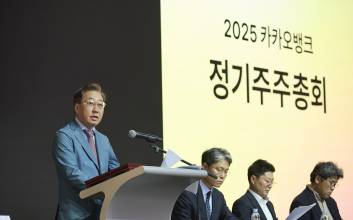 카카오뱅크는 26일 '제 9기 정기 주주총회'를 열고 윤호영 카카오뱅크 대표이사의 연임을 확정했다.이날 카카오뱅크는 주주총회에서 윤호영 현 대표이사를 2년 임기로 재선임했다. 윤호영 대표이사의 임기는 오는 2027년 3월까지다.윤호영 대표이사는 카카오뱅크 설립 단계부터 1인 태스크포스(TF)로 참여해 2016년부터 카카오뱅크를 이끌어 오고 있다. 윤호영 대표이사는 "앞으로도 기술 혁신을 바탕으로 고객에게 편리한 금융 생활 서비스와 혜택을 드림과 동시에 금융취약계층 대상 포용금융도 적극 실천해 금융 산업 및 경제 발전에 기여하는 은행으로 성장하겠다"고 밝혔다.현금배당을 포함한 2024년 재무제표도 승인했다. 결산 배당금은 1주당 360원, 총 1715억원 규모로 전년(715억원) 대비 2배 이상 늘어났다. 카카오뱅크는 주주총회 결의를 통해 신임 사외이사로 유호석 전 삼성생명 부사장(CFO)와 김정기 전 하나은행 부행장(마케팅그룹대표), 엄상섭 법무법인 지평 파트너 변호사 등 금융, 재무·회계 및 법률 분야 전문가를 선임했다. 권지예 기자 kwonjiye@edaily.co.kr 2025.03.26 10:55