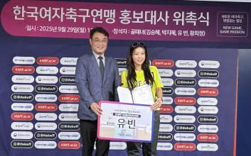 “진정한 홍보대사가 될게요.”SBS 예능 ‘골 때리는 그녀들(골때녀)’ 멤버들이 여자축구의 재미를 널리 알리겠다고 입을 모았다. 여자축구연맹은 29일 오전 11시 30분 서울 종로구 축구회관에서 골때녀 개그우먼 김승혜, 원더걸스 유빈, 아나운서 박지혜, 황희정 비더에이치씨 대표를 홍보대사로 위촉했다.올해 6월 전 남녀 국가대표 김영광과 전가을을 ‘플레이어 앰버서더’로 뽑은 여자축구연맹은 여자축구의 대중적 관심과 인식 제고를 위해 골때녀 4인방을 ‘미디어 앰버서더’로 선정했다.김승혜는 “(골때녀를 하면서) 축구를 하는 게 재밌더라. 흥미도 생겼고, 여자축구도 보러 갈 만큼 열정이 불탔다. 이번에 좋은 기회로 홍보대사가 될 수 있어 너무 기쁘다. 소셜미디어(SNS)나 축구를 보러 가서 홍보를 많이 하는 진정한 홍보대사가 될 수 있게 노력하겠다”고 말했다.유빈은 “어렸을 때는 축구를 잘 몰랐다. 골때녀를 통해 축구를 접했고 하는 걸 좋아하게 됐다. 더 잘하고 싶다 보니 축구도 챙겨보게 되고 이번에 5급 심판 자격증도 땄다”며 “좋은 기회를 통해 여자축구연맹 홍보대사가 돼서 너무 영광스럽고 기쁘다. 축구에 대한 사랑을 많은 분들께 알리고 여자축구가 더 알려지도록 열심히 홍보 활동을 해보려고 한다”고 다짐했다.박지혜 아나운서도 “골때녀를 시작하면서 여자축구를 직접 접하고 여자 선수들과 축구를 하고 배우기도 했다”면서 “‘여자축구도 이렇게 재밌는데 왜 이렇게 관심을 갖지 못했을까’라고 생각했다. 여자축구를 즐기는 법을 열심히 전하겠다”고 했다. 이들은 SNS(소셜미디어)와 다양한 이벤트에 직접 참여해 여자축구를 널리 알리겠다고 공언했다.황희정 대표는 “우리의 SNS를 활용해서 홍보 효과를 누리는 것도 있을 것 같고, 무엇보다 팬을 많이 유입하려면 이벤트만큼 좋은 게 없다고 생각한다”며 “회장님께서 지원을 해주기로 약속했다. 우리도 쇼츠를 만들거나, 팬 사인회 등 행사를 기획하면서 팬들과 많이 소통하고 경기장에 찾아오실 수 있게 하는 게 첫 번째 목표”라고 전했다.박지혜 아나운서는 “여자축구 선수들에 대한 홍보가 필요하다고 생각한다. 내가 최근에 느낀 바로는 SNS에 올라오는 여자축구 인식이 좋지 않은 곳으로 흘러가는 것 같다는 것이다. 잘 못하는 부분을 부각하는 것 같다. 잘하는 부분을 더 잘 보이게 하는 게 중요하다고 생각한다. 잘하는 선수를 보여주는 것부터 시작해서 많은 사람이 스포츠에 같이 열광하게 하게 하도록 하고 싶다”고 힘줘 말했다.축구회관=김희웅 기자 2025.09.29 13:26