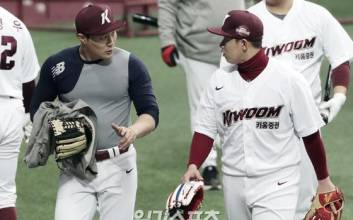 메이저리그에 진출하는 김하성이 3일 오후 서울 고척스카이돔에서 진행된 키움의 2021스프링캠프 훈련에 참가해 수비연습을 마치고 들어가며 김웅빈에게 조언을 해주고 있다.고척=김민규 기자 kim.mingyu@joongang.co.kr /2021.02.03/ 2021.02.03 15:59