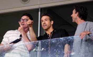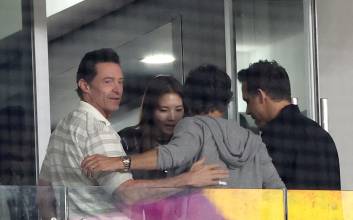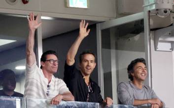 [포토]휴 잭맨-라이언 레이놀즈, 야구장에서 우리 영화가 나와!