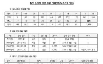 키움 히어로즈는 29일 서울 고척 스카이돔에서 열린 삼성 라이온즈와 경기에 앞서 내야수 김혜성(26) KBO리그 역대 118번째 1000안타 달성 기념 시상식을 진행했다.김혜성은 지난 3일 서울 잠실야구장에서 열린 두산 베어스와 원정 경기에 2번 타자·2루수로 선발 출전해 4회 중전 안타를 기록하며 KBO리그 역대 118번째 1,000안타를 달성했다. 이는 역대 최연소 2위 기록이다.이날 시상식에서 고형욱 키움 단장이 김혜성에게 상금 200만원과 기념 액자를, KBO 한용덕 경기운영위원이 기념 트로피를 전달했다. 홍원기 감독과 주장 송성문도 축하의 의미를 담은 꽃다발을 건넸다.김혜성은 “올 시즌 가장 달성하고 싶은 기록이었다. 특히 (이)정후 다음으로 최연소 2위인 점이 가장 기쁘다. 1,000안타는 꾸준히 경기에 나가야 달성할 수 있는 만큼, 앞으로도 꾸준히 활약할 수 있는 선수가 되고 싶다”고 소감을 밝혔다.안희수 기자