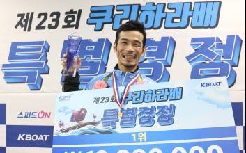 10월 29일과 30일 이틀 동안 미사경정장에서 제23회 쿠리하라 특별경정이 열렸다. 이번 대회는 올해 1회차부터 42회차까지 성적 상위자들이 대거 출전한 대회로, 누가 그 주인공이 될지 예측할 수 없는 접전이 펼쳐졌다. 특히 선수들에게는 한국 경정의 영원한 스승 쿠리하라 코이치로의 이름이 걸린 이 무대에 오르는 것만으로도 큰 의미는 대회였다. 예선전, 박원규의 반전과 무서웠던 김완석의 기세29일, 첫날 13경주에서 강력한 우승 후보로 꼽혔던 김민준은 안타깝게도 김종민에게 밀리며 탈락의 고배를 마셨다. 하지만, 김종민의 압박을 뚫고 나간 박원규는 예상외로 선두로 나서며 결승 진출을 확정 지었다. 그 뒤를 이어, 김종민과 박종덕이 치열한 추격전을 펼쳤고, 결국 2위와 3위를 차지하며 결승전에 진출했다. 이어진 또 다른 예선전 14경주, 김완석은 초반부터 그 누구도 따라올 수 없는 ‘독주’를 시작했다. 인코스의 유리함을 제대로 살린 김완석은 신속하고 정확한 인빠지기로 경주를 이끌었다. 후속으로 조성인과 심상철이 뒤늦게 결승권을 두고 격돌을 벌였다. 결국, 김완석은 흔들림 없이 우승을 차지하며 결승에 진출했고, 조성인과 심상철은 각각 2위와 3위로 뒤따라 결승전 탑승권을 손에 쥐었다. 김완석 쿠리하라배 우승 감격30일 대망의 제23회 쿠리하라배 특별경정 결승전이 열렸다. 김완석, 박원규는 예선전 1위로 각각 1코스와 2코스를 배정받았고, 김종민과 조성인은 3코스와 4코스 박종덕과 심상철은 5코스와 6코스를 배정받았다. 그간 ‘1코스의 지배자’로 불렸던 김완석이 과연 이번에도 그 명성을 이어갈 수 있을지, 모든 시선이 그에게 쏠렸다.대기 행동을 마친 선수들이 일제히 속도를 내기 시작했다. 그런데 스타트 이후 김완석은 예상을 깨지 않고 1턴 마크에서 이번에도 인빠지기의 정석을 선보이며 선두를 점령, 경기를 주도하기 시작했다. 그러나 2위와 3위 싸움은 끝날 때까지 끝난 것이 아니었다. 김종민과 박원규가 2위 자리에서 경합을 벌였고, 박종덕과 조성인 역시 치열한 접전을 펼치며 3위를 향해 달려갔다. 한편 심상철은 박종덕과 조성인이 경합을 벌인 틈을 파고들려 하였으나, 무리한 탓인지 조타 불량으로 인해 타고 있던 보트가 전복되며 그대로 경기를 포기할 수밖에 없었다.결국 김완석은 예선부터 보여준 압도적인 실력을 유감없이 선보이며 당당히 제23회 쿠리하라배 특별경정의 주인공이 되었고, 2위는 최근 통산 600승 고지를 점령한 김종민, 3위는 박종덕이 차지했다.경주 직후 열린 시상식에서 김완석은 “선수라면 한 번쯤은 우승하고 싶은 쿠리하라배 특별경정에서 우승하게 되어 정말 기쁘다. 1코스를 배정받았기 때문에, 스타트에 집중하고 실수하지 않도록 이미지 트레이닝을 하며 마음을 비운 것이 도움이 되었다.”라고 말하며, “올해 6월 왕중왕전과 이번 쿠리하라배에서 우승했다. 남은 목표는 그랑프리 우승이다. 우승을 위해 묵묵히 최선을 다하겠다.”라고 소감을 전했다. 결승전에서의 승리로 김완석은 우승 상금 1000만원, 김종민과 박종덕은 700만원, 500만원의 상금을 받았다. 그동안 꾸준히 실력을 쌓아온 김완석, 이번 대회를 통해 다시 한번 경정 팬들에게 강렬한 인상을 남겼고, 오는 12월 10일과 11일 펼쳐질 그랑프리 경정에서도 선전이 기대된다.안희수 기자 2025.10.31 07:53