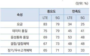 '출시 3년' 5G 만족도 LTE보다 낮아…이용자 절반 이통사에 불만