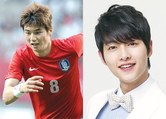 얼핏 보면 기성용은 곱상한 이미지의 송중기에 비해 다소 남성적으로 보인다. 그러나 자세히 뜯어보면 선한 눈매와 하얀 피부가 비슷하다. 특히 기성용이 골을 넣고 환하게 웃는 모습은 송중기의 살인미소와 꼭 닮았다. 축구 마니아로 알려진 송중기도 이에 대해 '너무 기분 좋다. 내가 봐도 웃는 모습이 비슷한 것 같다'고 말한 바 있다.