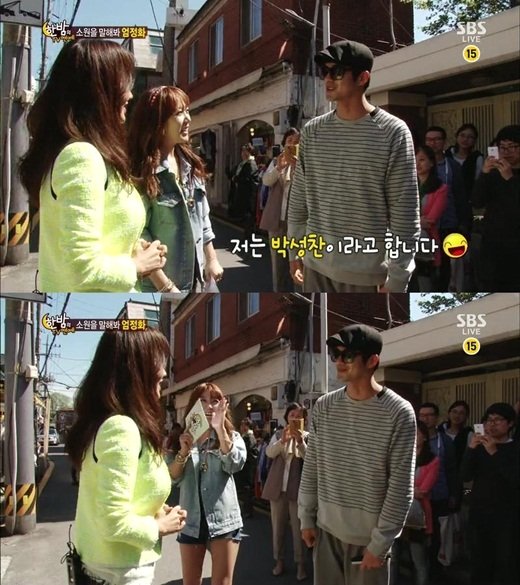 리포터는 엄정화에게 길을 가다가 마음에 드는 사람이 있으면 소개팅을 시켜주겠다고 했다. 엄정화는 한 남자를 향해 "잘생겼다"고 말하며 호감을 보였다. 리포터는 그 남자를 불러세워 엄정화를 소개시주며 즉석만남을 진행했다. 두 사람은 서로의 직업을 묻고 악수를 나누며 짧은 소개팅을 했다. 헌팅남은 모델 출신으로 이름은 박성찬.