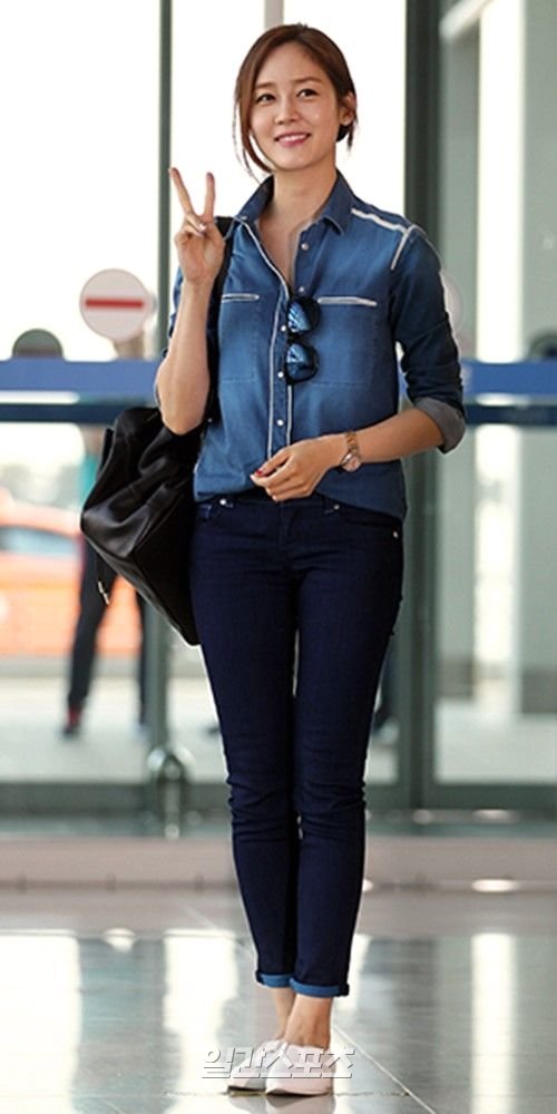 ▶데님 셔츠+데님 팬츠 시기 : 2014년 6월 13일 SBS ‘힐링캠프 in 브라질’ 녹화 출국 스타일 포인트 : 데님 셔츠에 데님 팬츠를 매치했다. 심심할 수도 있을 올 데님 룩에 화이트 슈즈와 빅 사이즈 블랙 백으로 포인트를 줬다.
