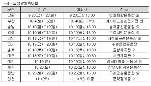 시·도생활체육대회. 10월 전국이 들썩거린다