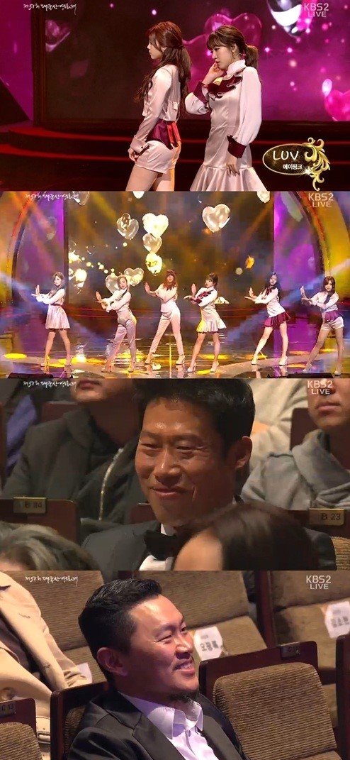특히 에이핑크의 무대를 본 배우 유해진, 양동근, 김인권 등은 미소를 감추지 못한 모습이 포착돼 웃음을 자아냈다. MC 신현준은 “영화제 오니깐 에이핑크도 가까이 볼 수도 있고 좋다. 화면에 보니깐 '북한산' 유해진 씨가 아빠미소를 짓고 있다"고 말해 폭소를 유발했다.