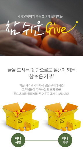 카카오파머 제주는 소비자가 감귤 한박스를 구입하면 제주광역 푸드뱅크를 통해 어려운 이웃들에게 감귤 한박스를 기부하는 ‘참쉬운 기부 캠페인’을 24일까지 진행한다.