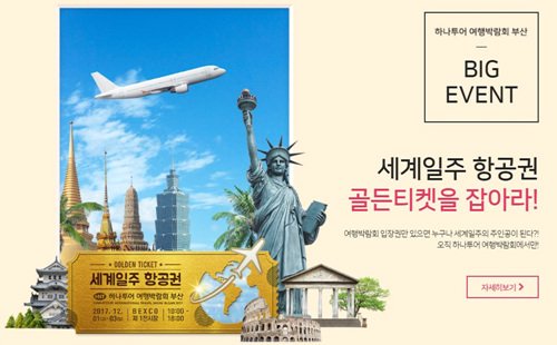 박람회장을 찾은 방문객 중 2명을 추첨해 세계일주 항공권을 제공하는 '골든티켓 이벤트'도 진행된다. 입장권에 마련된 응모영역에 연락처를 적고 이를 응모함에 넣으면 된다.