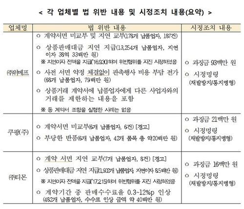 업체별 과징금은 위메프 9300만원, 쿠팡 2100만원, 티몬 1600만원이다.