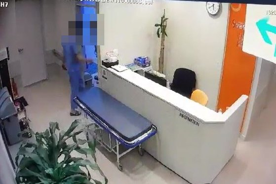 앞서 부산 영도경찰서는 정형외과 원장 A(46)씨와 의료기기 판매 영업사원 B(36)씨, 간호사 등 7명을 의료법 위반 등의 혐의로 7일 검찰에 송치했다. A씨는 지난 5월 10일 부산 영도구 자신이 운영하는 정형외과에서 환자 C(44)씨의 어깨 부위 수술을 의료기기 영업사원인 B(36)씨와 간호사, 간호조무사에게 대신하게 한 혐의를 받고 있다. 대리수술 이후 환자 C씨는 심정지로 뇌사 판정을 받았다. 사고가 나자 병원 원무부장은 환자에게 수술 전 동의서를 받지 않은 사실을 숨기려고 환자의 서명을 위조해 동의서에 입력했다. 또 간호조무사는 진료기록을 조작하기도 했다. 의사가 사복을 입고 수술실에 들어가는 모습. [사진 부산경찰청] 경찰은 병원을 압수 수색해 확보한 수술실 외부 폐쇄회로(CC)TV로 이들의 범행을 입증했다. CCTV를 보면 이날 피해자가 수술장에 들어가기 10여 분 전쯤인 오후 5시 32분께 의료기기 영업사원이 수술복으로 갈아입고 수술장에 들어가는 모습이 찍혀있다. 의사는 이후 수술 중간에 사복 차림으로 나타났다가 20분도 되지 않아 수술실을 뜨는 장면이 담겨있다. 경찰은 영업사원 B씨가 이전에도 해당 수술실에 9차례 출입한 영상을 확보해 대리수술 여부를 추가로 확인하고 있다.