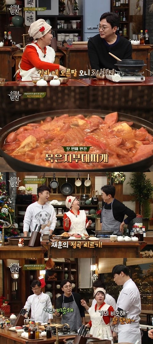 다양한 종류의 햄, 소시지, 묵은지, 두부 등을 넣어 비주얼도, 맛도 완벽한 김수미표 묵은지부대찌개가 시청자들의 침샘을 자극할 예정이다. 또 싱싱한 꽃게에 매콤하면서도 달콤한 양념에 무쳐 만든 양념게장, 고소하고 담백한 감자전, 새콤한 양파장아찌도 선보인다.