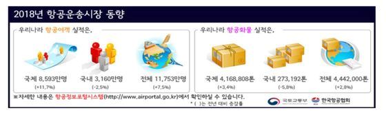이 중에서 국제선은 8593만 명으로 전년 대비 11.7% 증가했다. 중국 노선은 2017년보다 15.6% 증가한 1611만 명을 기록했다.