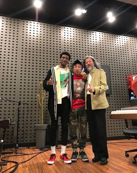 공개된 사진엔 박명수를 중심으로 선 모델 한현민과 시니어 모델 김칠두 씨의 모습이 담겨 있다. 두 모델의 남다른 비율과 독보적인 포스가 시선을 사로잡는다.