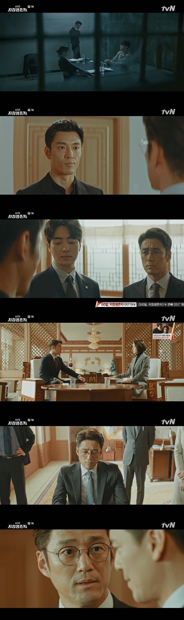 22일 방송된 tvN 월화극 '60일, 지정생존자'에서는 손석구(차명진)가 지진희(박무진)에게 차기 대통령 후보가 되어달라고 제안했다.