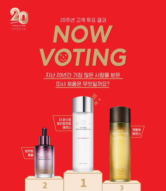 미샤는 공식 홈페이지 ‘뷰티넷’을 통해 지난달 13일부터 약 2주간 제품 투표 이벤트를 진행했다. 20년간 가장 사랑받은 제품을 선발하는 ‘러뷰 부문’과, 지금은 단종됐지만 추억의 인기 제품을 선정하는 ‘미슈 부문’으로 투표가 진행됐다.