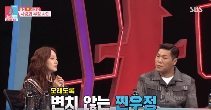이날 유진은 "남편 기태영 씨를 남자로만 보고 싶으냐"라는 신동엽, 서장훈의 질문에 "남자이자 친구이고 싶어요"라며 입을 열었다.