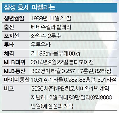 허삼영 삼성 감독은 "2년 전에도 (영입) 대상자였다"며 피렐라에 대한 기대감을 나타냈다. 허삼영 감독은 "피렐라는 요미우리도 보고 있었던 선수였다. 요미우리가 히로시마에 선수를 뺏겼다"고 비하인드 스토리를 전했다. 소프트뱅크와 함께 NPB 최고 명문구단인 요미우리에서 영입을 검토했다는 건 그만큼 기량이 뛰어나다는 의미로 해석할 수 있다.
