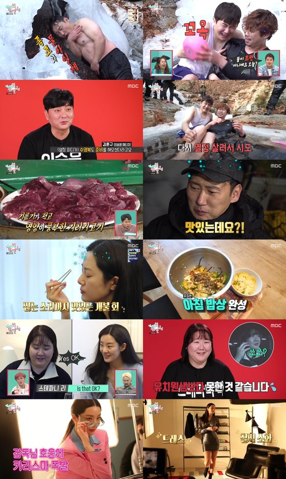 벌써 두 차례 호흡을 맞춘 '자연인'과 '전참시' 스태프들은 이날 웃음 앙상블을 선보이며 스튜디오를 웃음바다로 물들였다. 특히, '전참시' 열정 PD와 '자연인' 독사 PD의 티키타카가 빵 터지는 웃음을 선사했다. 두 사람이 자존심을 건 계곡물 입수 대결에 나선 것. 먼저, 이승윤이 상의탈의 몸부림으로 입수 포문을 열었다. 이어 수영복까지 미리 챙겨 입고 온 열정 PD가 야심 차게 얼음물에 뛰어들었다. 하지만 이내 엄청난 추위에 몸 둘 바를 몰라하며 발을 동동 굴러 웃음을 자아냈다.
