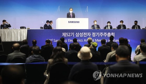 ‘동학개미’들의 관심이 집중된 가운데 17일 수원컨벤션센터에서 제 52기 삼성전자 정기 주주총회가 열렸다. 주총 전부터 3명의 사외이사 재선임 건이 논란이 됐다. 김종훈 키스위모바일 회장, 김선욱 전 이대총장, 박병국 서울대 교수는 이재용 삼성전자 부회장의 국정농단 수사와 재판 기간에 선임돼 활동했다. 이 부회장이 국정농단 사건으로 실형을 받은 탓에 이들이 감시 역할을 제대로 수행하지 못했다는 지적이 따랐다.