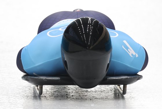 Yin Zheng, of China, slides during men's skeleton run 1 at the 2022 Winter Olympics, Thursday, Feb. 10, 2022, in the Yanqing district of Beijing. (AP Photo/Pavel Golovkin) 〈저작권자(c) 연합뉴스, 무단 전재-재배포 금지〉[올림픽] 윤성빈 질주 (베이징=연합뉴스) 박동주 기자 = 윤성빈이 10일 중국 베이징 옌칭의 국립 슬라이딩 센터에서 열린 2022 베이징동계올림픽 남자 스켈레톤 2차 시기에서 힘차게 질주하고 있다. 2022.2.10 pdj6635@yna.co.kr (끝) 〈저작권자(c) 연합뉴스, 무단 전재-재배포 금지〉 '아이언 맨' 윤성빈(강원도청)이 2022 베이징 동계올림픽 스켈레톤 남자 1, 2차 주행에서 12위에 그쳤다.