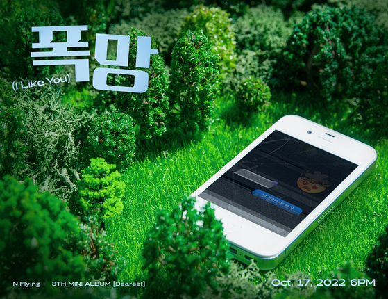 공개된 타이틀 포스터에는 타이틀곡명 ‘폭망’이 적혀있어 시선을 끈다. 푸른 잔디 위 액정에 금이 간 휴대전화가 놓여 있고, 휴대전화 화면에는 누군가와 나눈 메시지가 담겨 있다. 휴대전화 주인이 보낸 듯한 머리가 폭발하는 이모티콘과 “널 좋아하게 됐어”라는 내용의 메시지는 신곡에 대한 궁금증을 높인다.