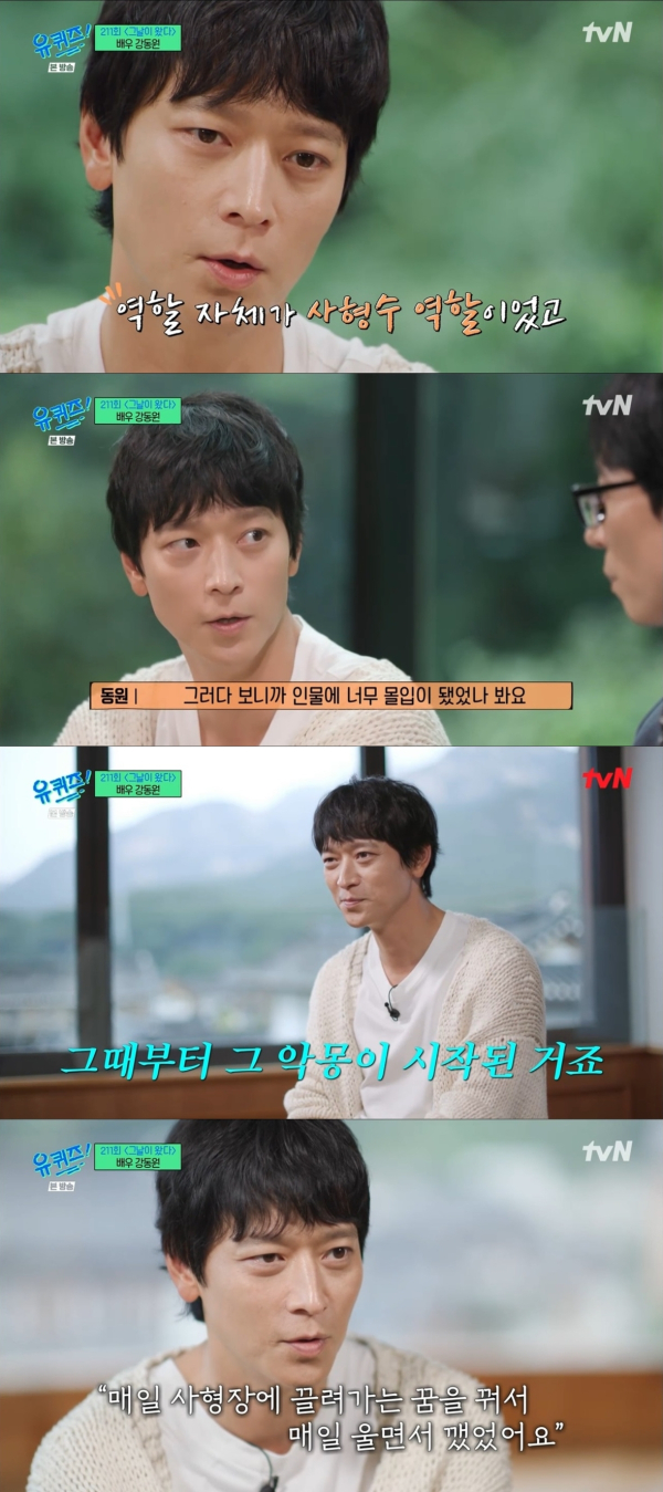 이날 방송에서 강동원은 영화 ‘우리들의 행복한 시간’에 대해 “사형수 역할이었고 당시 서울구치소에 가서 실제 사형수들을 만났다. 그러다 보니 캐릭터에 몰입이 됐었다”고 말했다.