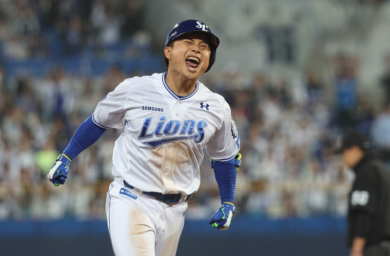 사진=삼성 제공 평소 인상을 쓰며 전력으로 질주하던 베테랑이 베이스를 돌며 포효했다. 홈 플레이트를 밟기 전에 동료에게, 또 더그아웃에 들어와선 관중석을 향해 하트 세리머니까지 했다. 대졸 출신 프로 14년차 김헌곤(36·삼성 라이온즈)의 이야기다.