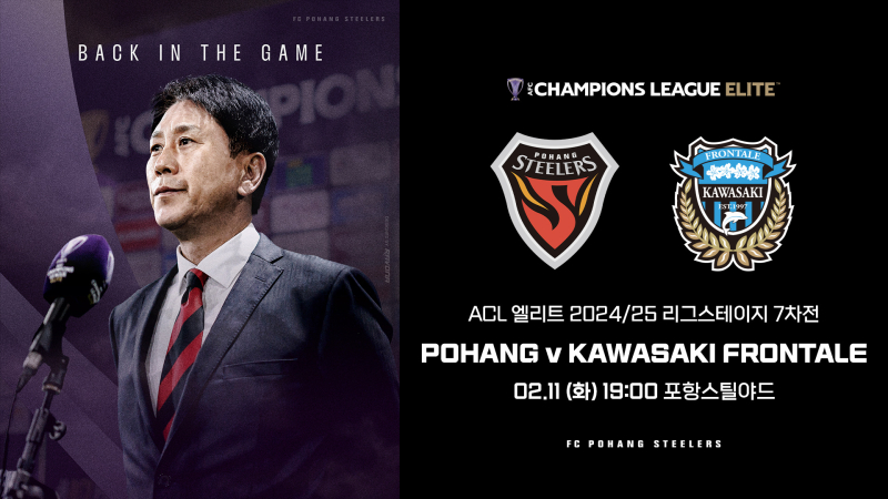 포항 스틸러스는 오는 11일 오후 7시 포항 스틸야드에서 가와사키 프론탈레와 AFC 챔피언스리그 엘리트 2024~25(이하 ACLE) 리그스테이지 7차전 홈경기를 펼친다. 가와사키 프론탈레에는 포항에서 데뷔한 정성룡 골키퍼가 속해있다. 오랜만에 친정 팀을 찾은 정성룡의 방패를 포항이 어떻게 뚫을지가 관전 포인트다.