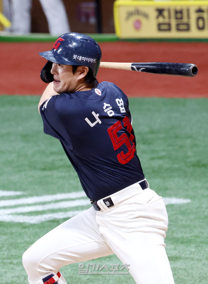 [포토]나승엽, 만루찬스에서 2타점 적시타