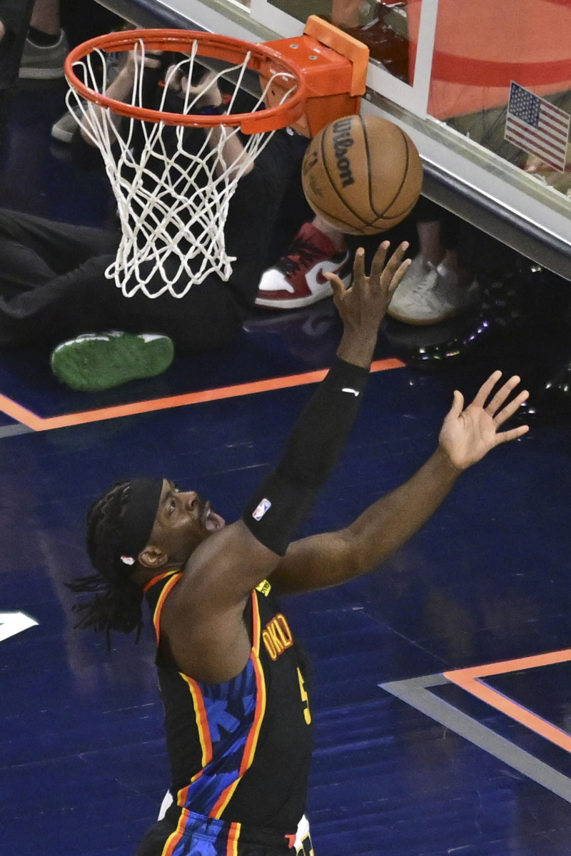 epa12082338 Oklahoma City Thunder guard Luguentz Dort makes a basket during the first quarter of the Western Conference Semifinals game two between the Oklahoma City Thunder and the Denver Nuggets in Oklahoma City, Oklahoma, USA, 07 May 2025. The Denver Nuggets lead the best of seven series 1-0. EPA/GERALD LEONG SHUTTERSTOCK OUT/2025-05-08 11:14:24/ <저작권자 ⓒ 1980-2025 ㈜연합뉴스. 무단 전재 재배포 금지, AI 학습 및 활용 금지>