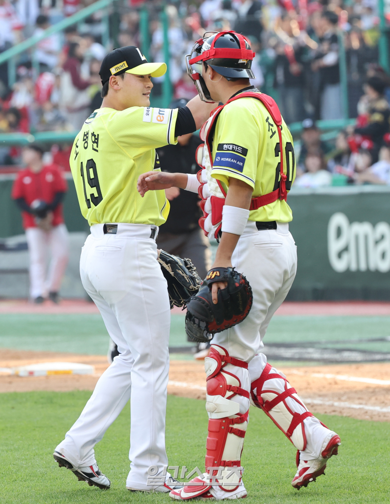 [포토]조병현-조형우, DH 1차전은 잡았어!