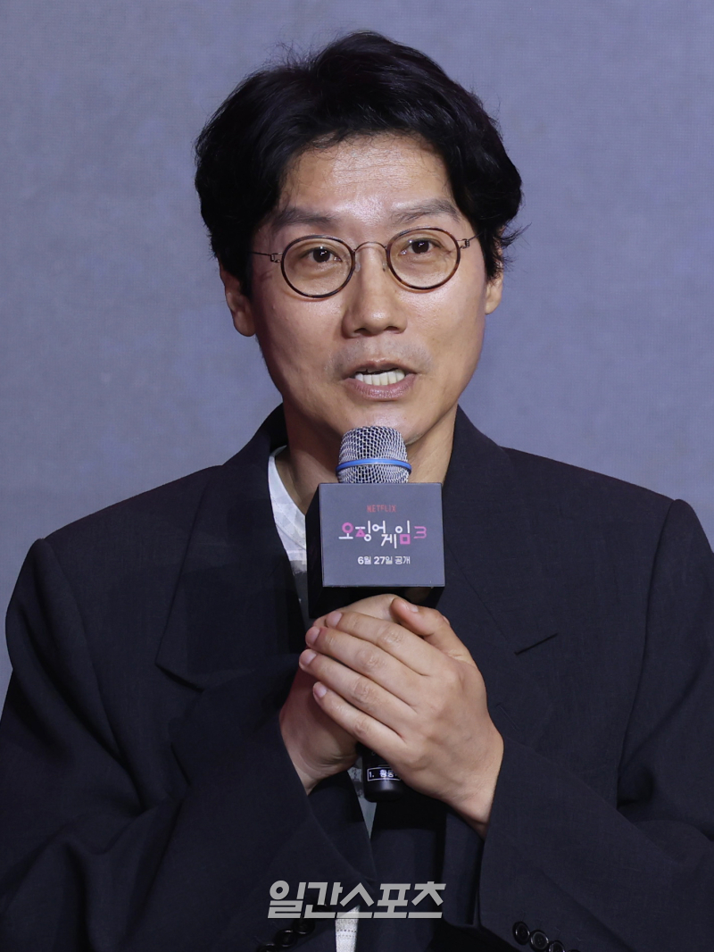 9일 오전 서울 용산구 서울드래곤시티에서는 넷플릭스 오리지널 시리즈 ‘오징어 게임’ 시즌3(이하 ‘오징어 게임3’) 제작보고회가 열렸다. 이 자리에는 황동혁 감독을 비롯해 배우 이정재, 이병헌, 임시완, 강하늘, 위하준, 박규영, 이진욱, 박성훈, 양동근, 강애심, 조유리, 채국희, 이다윗, 노재원이 자리했다.
