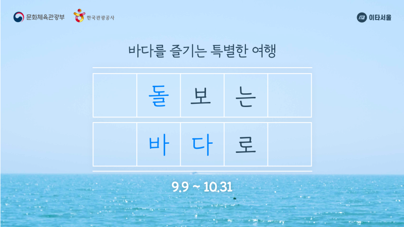 한국관광공사는 지속가능한 해양관광 활성화와 친환경 여행문화 확산을 위해 오는 10월 31일까지 ‘바다를 즐기는 특별한 여행, 돌보는 바다로’ 캠페인을 전개한다.