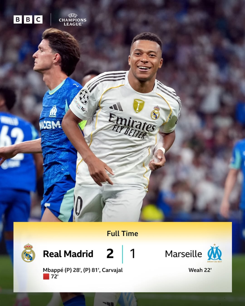 레알은 17일(한국시간) 스페인 마드리드의 산티아고 베르나베우에서 열린 2025~26 UCL 리그 페이즈 1차전서 마르세유(프랑스)를 2-1로 제압했다.