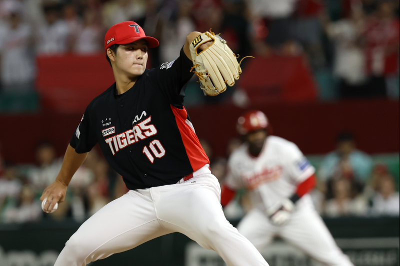 이범호 감독은 24일 고척 키움 히어로즈전에 앞서 전날 경기에 선발 등판한 김태형에 대해 "잘했다"라고 촌평했다. 인천 SSG 랜더스전에 출격한 김태형은 5이닝 4피안타(1피홈런) 2탈삼진 2실점 했다. 투구 수 92개. 개인 한 경기 최다 이닝(종전 4이닝)과 최다 투구 수(종전 70개) 기록을 갈아치우며 버텼으나 결과는 패전. 5회 2사 후 외국인 타자 기예르모 에레디아에게 통한의 결승 투런 홈런을 허용한 게 뼈아팠다.