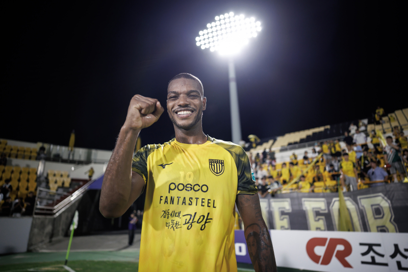호난. 사진=프로축구연맹 ‘하나은행 K리그2 2025’ 31라운드 MVP는 전남 호난이 차지했다. 호난은 27일(토) 순천팔마종합운동장에서 열린 전남과 부천의 경기에서 멀티골을 기록하며 전남의 3-2 승리를 이끌었다.