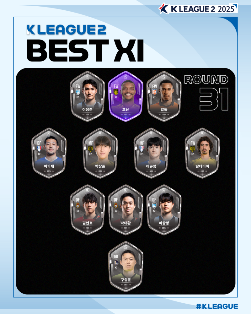 K리그2 31라운드 베스트 매치 또한 전남과 부천의 경기로 선정됐다. 이날 부천은 전반 12분 몬타뇨의 선제골로 앞서갔지만, 전남 호난이 전반 30분 동점골을 기록했다. 이후 전남은 전반 추가시간 발디비아의 득점으로 역전에 성공했지만, 부천이 후반 21분 상대 자책골을 유도하며 다시 승부의 균형을 맞췄다. 팽팽한 흐름이 이어지던 후반 28분 전남 호난이 결승골을 기록하며 경기는 전남의 3-2 승리로 끝났다.