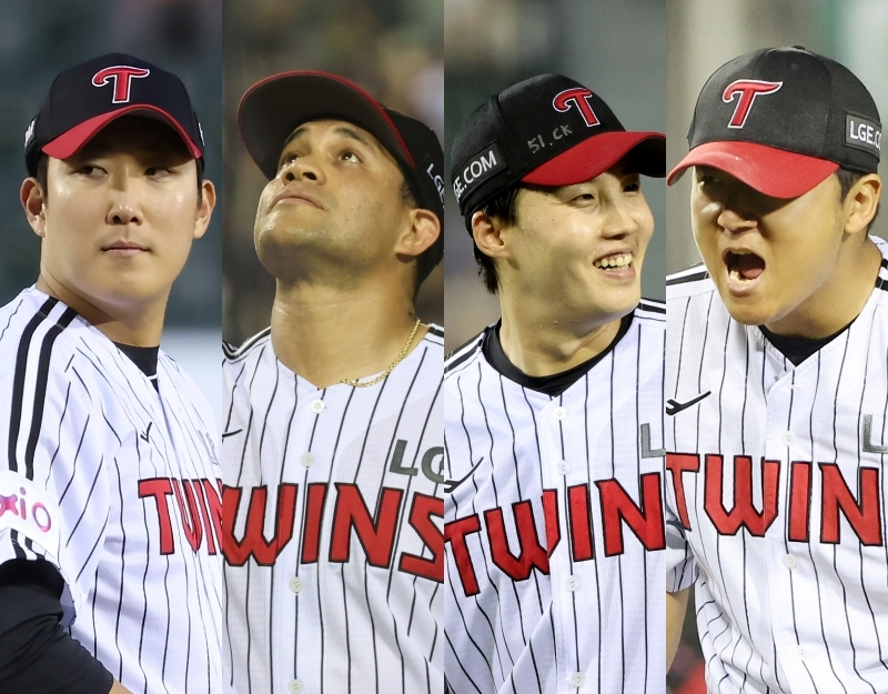 왼쪽부터 손주영, 치리노스, 임찬규, 송승기. IS 포토 LG 트윈스가 창단 후 첫 규정이닝을 채운 10승 선발 투수 4명을 배출했다.