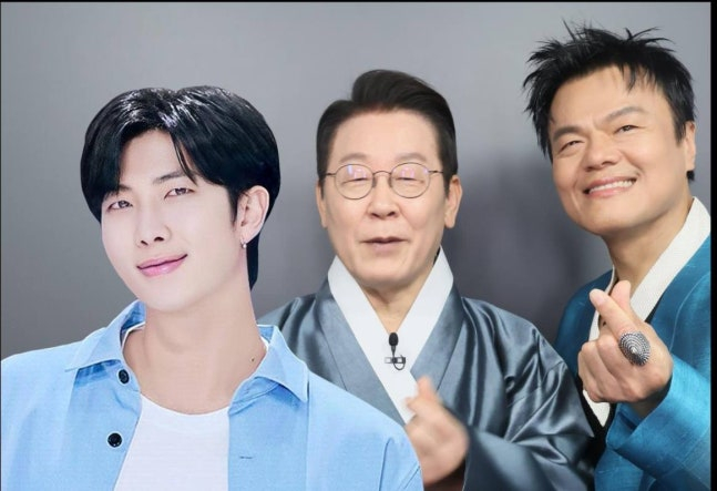 그룹 BTS(방탄소년단) RM이 이재명 대통령과 박진영 JYP 총괄 프로듀서가 자신의 프레임을 배경으로 찍은 사진에 놀라움을 표했다.