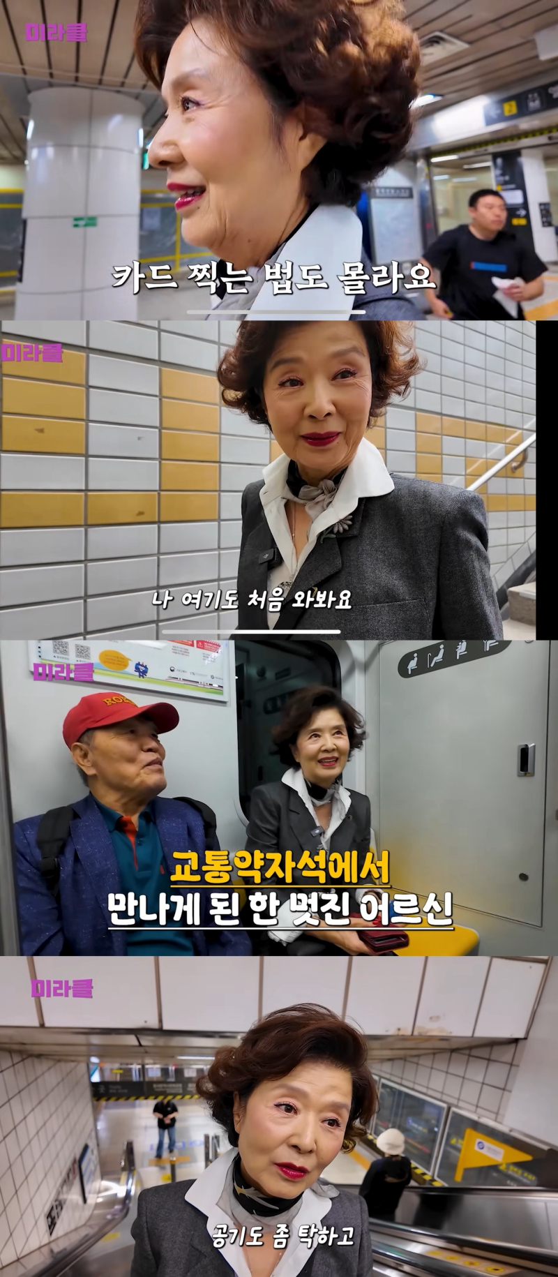 약속 장소인 충무로역으로 향한 윤미라는 미리 발급받은 어르신 교통카드를 꺼내 들며 “살면서 지하철은 처음 타본다”고 밝혔다. 개찰구 앞에서 잠시 헤매던 그는 시민들의 도움으로 무사히 탑승했고, 어르신 전용 좌석에서는 옆자리 승객과 건강과 삶에 대한 이야기를 나누며 훈훈한 장면을 연출했다.