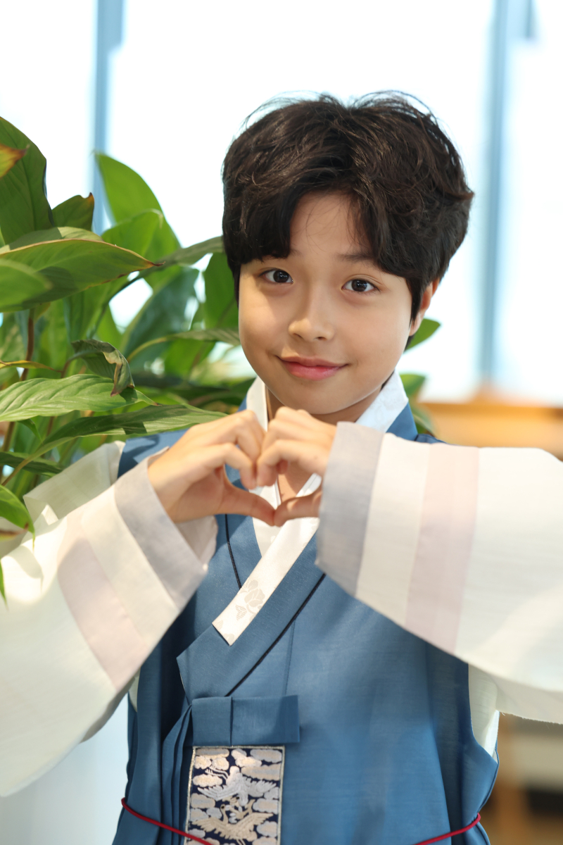 넷플릭스 오리지널 시리즈 ‘폭싹 속았수다’에서 양관식(박보검 분)의 아역을 맡아 열연한 배우 이천무가 서울 중구 순화동 KG타워에서 진행된 추석 맞이 한복 인터뷰에 앞서 포즈를 취하고 있다.