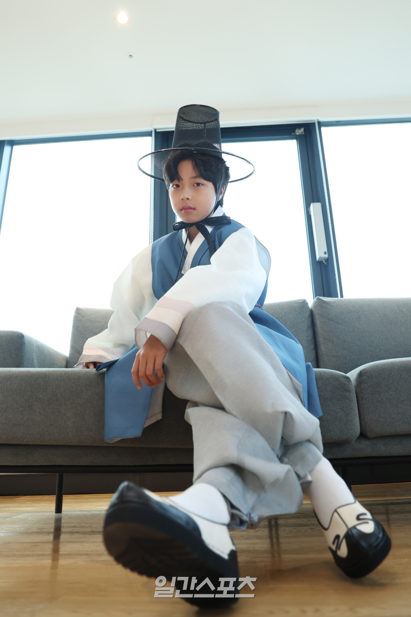넷플릭스 오리지널 시리즈 ‘폭싹 속았수다’에서 양관식(박보검 분)의 아역을 맡아 열연한 배우 이천무가 서울 중구 순화동 KG타워에서 진행된 추석 맞이 한복 인터뷰에 앞서 포즈를 취하고 있다.