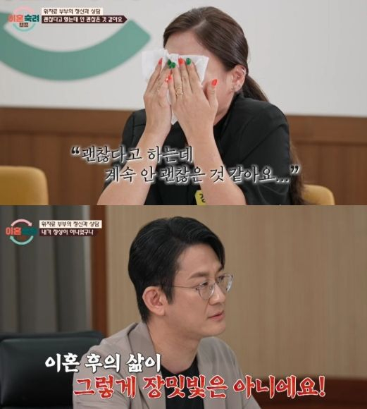 부부는 첫 솔루션으로 이광민 전문의에게 정신과 상담을 받았다. 이광민 전문의는 그동안 아버지에게 문제 해결을 미루고 책임을 회피하려 했던 남편의 문제를 지적하며, 남편에게 “이혼 후의 삶은 장밋빛이 아닐 것”이라고 우려를 표했다. 가사조사 이후에도 억울함만 토로하던 남편은 상담을 통해 아내의 진심과 자신의 잘못을 깨닫고 개선 의지를 내비쳤다.