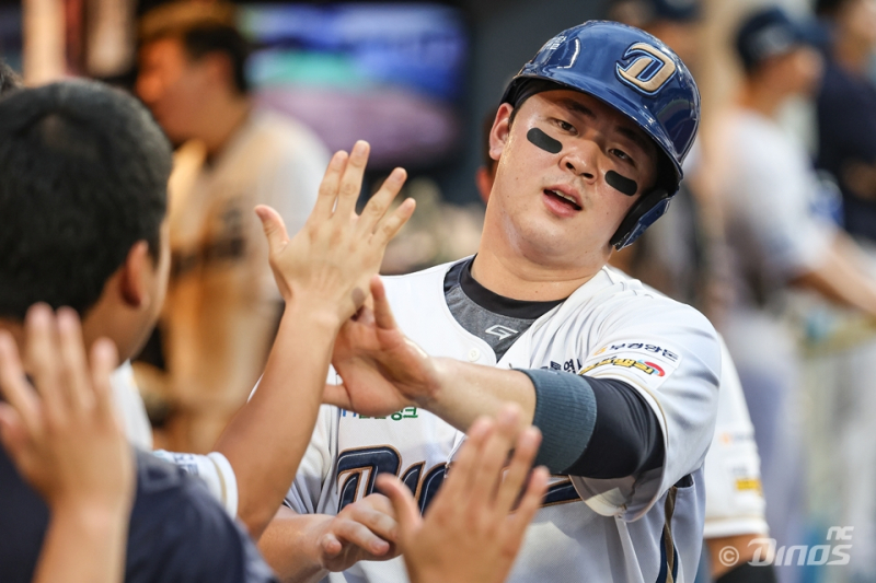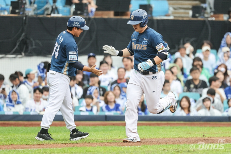 김형준은 지난 6일 대구 삼성라이온즈파크에서 열린 삼성 라이온즈와의 와일드카드 결정(WC) 1차전에서 왼손 통증으로 교체된 바 있다. 김형준이 지난 6일 열린 삼성과의 와일드카드 결정 1차전 5회 초 솔로 홈런을 터뜨린 뒤 베이스를 돌고 있다. 구단 제공 김형준은 1차전 5회 초 3-0으로 달아나는 솔로 홈런을 터뜨리고 5회 말 수비 때 통증으로 교체됐다. 부상으로 다음날 열린 2차전에 결장했고, NC는 0-3으로 져 가을 야구를 마감했다. 공·수에서 김형준의 공백을 뼈저리게 절감했다. 김형준을 대신해 1군 통산 8경기만 뛴 김정호가 안방을 책임졌다.