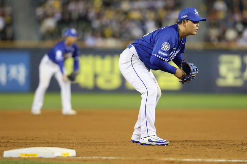 삼성 라이온즈는 준플레이오프(준PO·5전 3선승제) 3차전에서 8회 위기를 맞았다. 5-1로 앞선 8회 에레디아의 땅볼 타구를 3루수 김영웅이 쇄도해 잡으려다 허리 통증을 호소하며 교체된 것이다. 돌발 상황. 갑자기 교체가 필요해졌다. 바로 전병우가 몸을 풀었고, 교체 투입돼 3루를 지켰다.