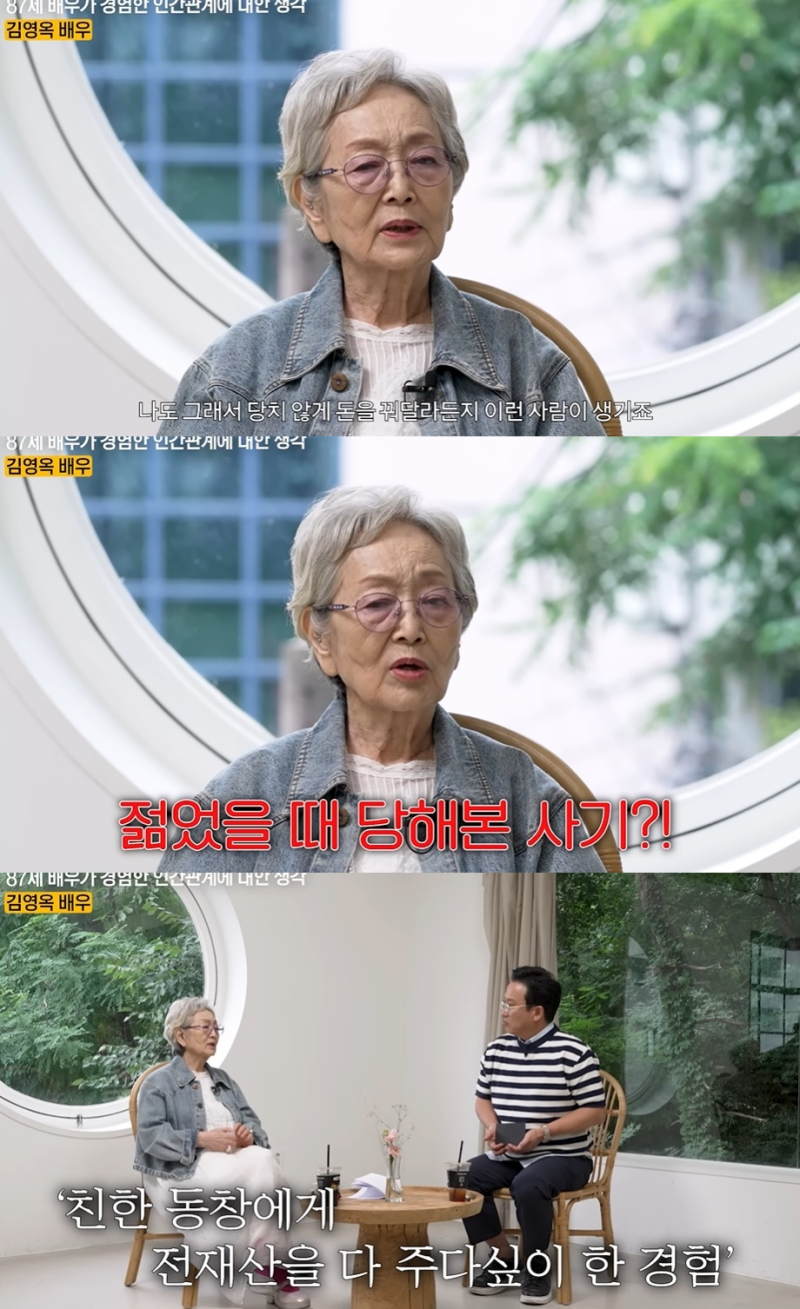 14일 공개된 유튜브 채널 ‘지식인사이드’의 ‘서경석의 인생수업’에서 김영옥은 “젊었을 때 동창에게 사기를 당해 전 재산을 다 잃다시피 했다. 아주 큰 공부가 됐다”며 “아이들에게도 ‘줄 수 있는 만큼만 줘라. 내가 가난해질 정도면 사람도 돈도 잃는다’고 말한다”고 밝혔다. 이어 “그래서 지금은 돈 거래를 절대 하지 않는다”고 단호히 말했다.